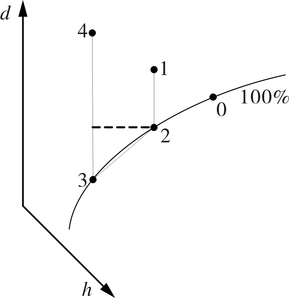 2.2 理想调温除湿机的空气处理过程
