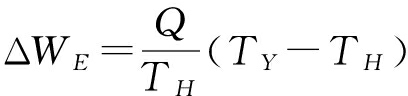 式中 ΔJWE-S——功WE转换成的显热火积TY——热源的温度 TH——热汇的温度 WE——功
